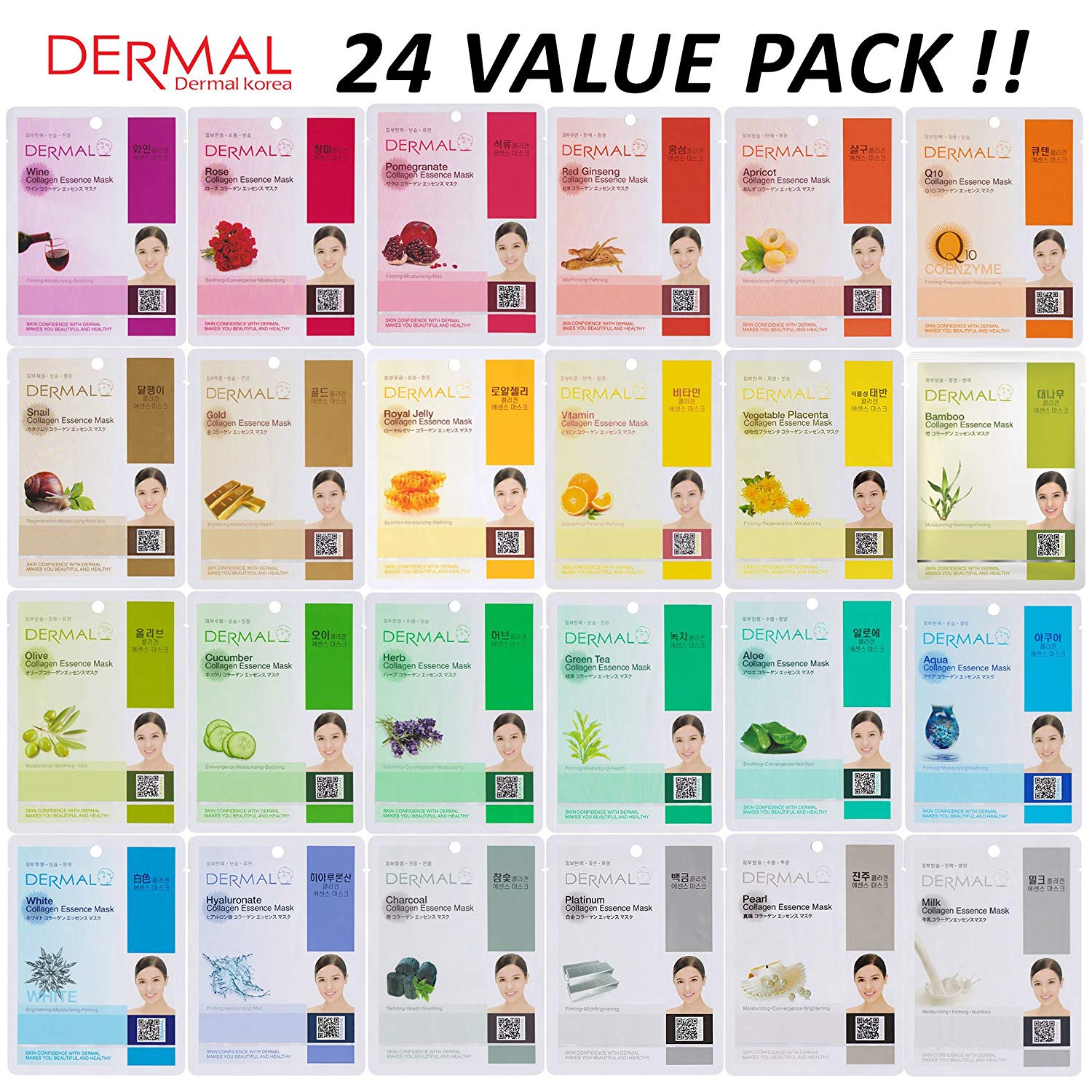 DERMAL KOREA Collagen Essence Face Mask Sheet (24ea)