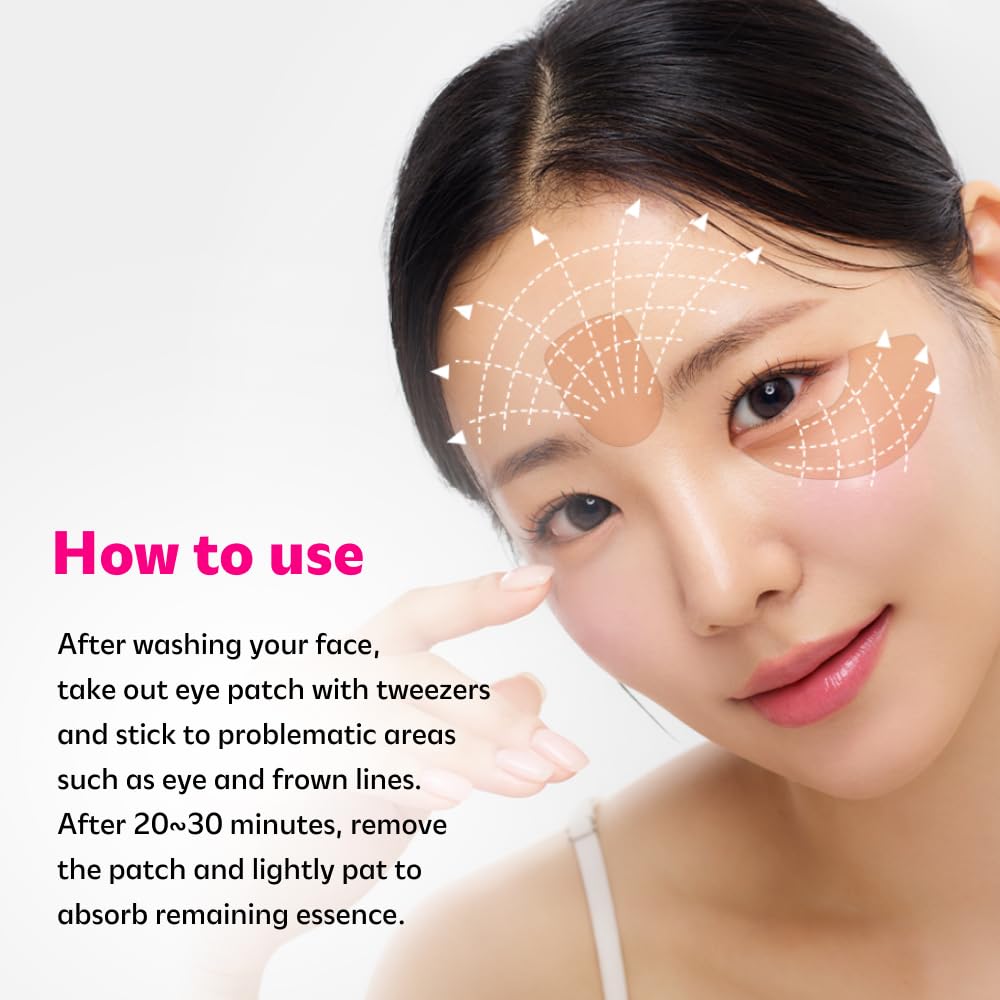 - PREMIUM GEL EYE PATCHES: A gel patch designed in a special form to customize care for various skin areas such as the eyes, forehead, and nasolabial folds, with a serum containing high active ingredients that effectively improves skin