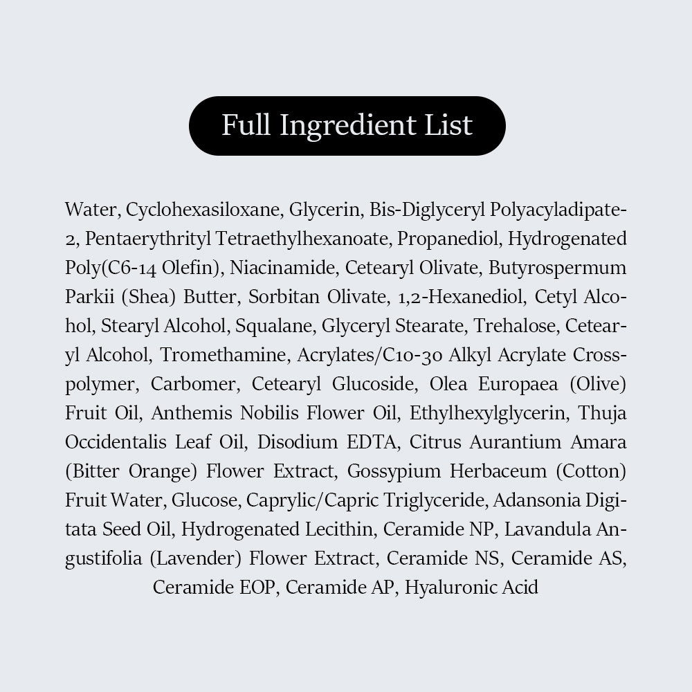 5 Ceramides, Hyaluronic Acid, and Niacinamide help protect the skin from external factors that can cause skin damage by forming a skin protective film and visibly reduce dark spots, age spots, blemishes